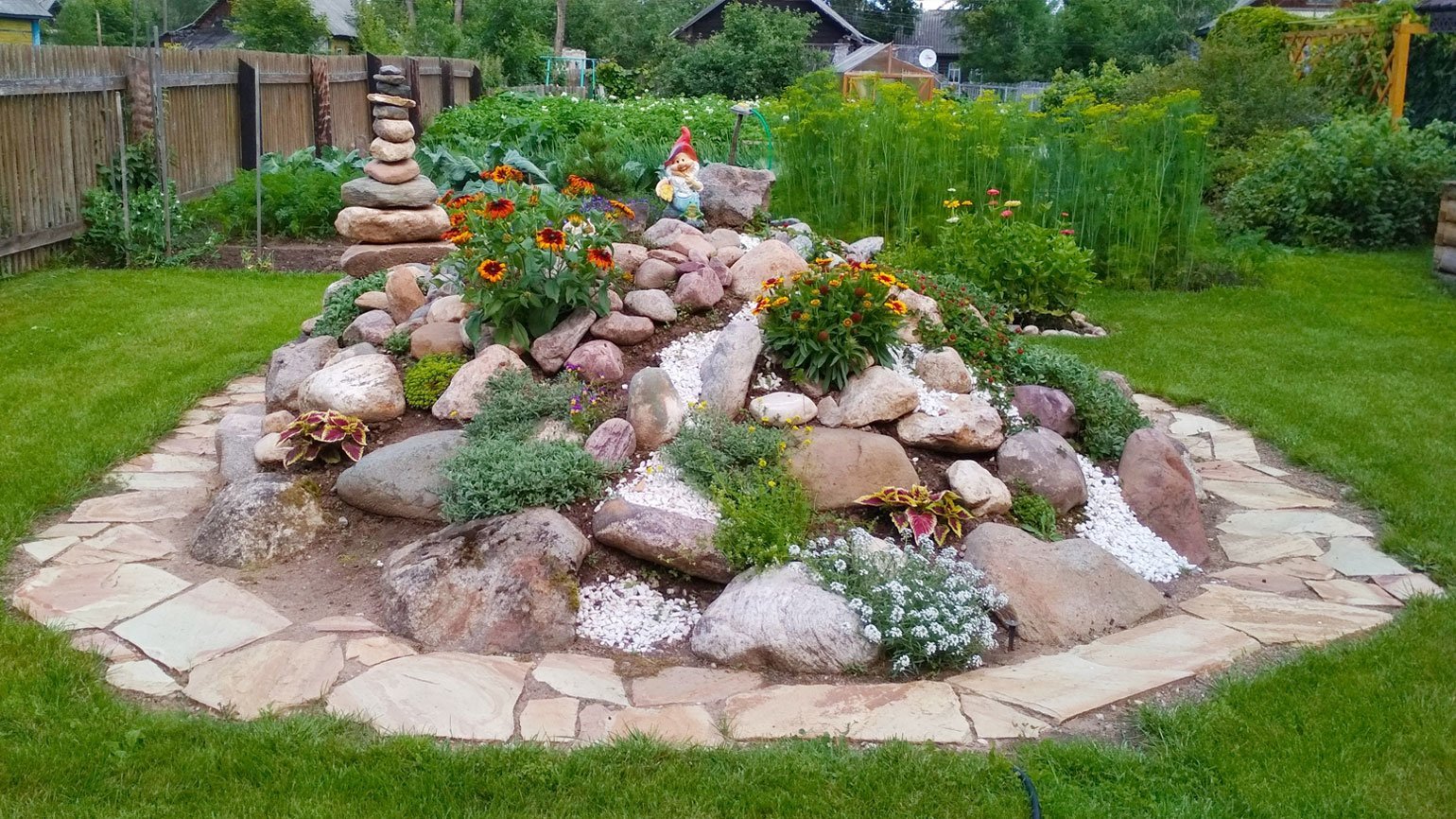 Однако главный визуальный элемент горки ― растения. Как правило, выбор ограничен не слишком привередливыми сортами, которым будет комфортно на специфической каменистой «почве», под прямыми солнечными лучами и при минимальном уходе.