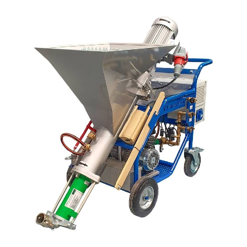 При использовании цементно-песчаных смесей, которые тяжелее и грубее гипсовых, допустимая длина шланга для 220-вольтовых машин сокращается до 7–10 метров. Это связано с тем, что инерция тяжелого раствора требует большего пускового момента, который у однофазных двигателей ограничен.