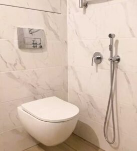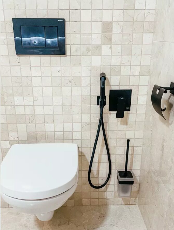 Финальный этап ремонта — самый ответственный. Укладка плитки всех форматов (от классической квадратной до крупноформатного керамогранита) требует высокой квалификации мастера. Важно не только соблюсти геометрию, но и правильно подготовить основание, которое было усилено и выровнено на предыдущих этапах. Параллельно ведутся сантехнические работы по установке ванны, душевой кабины, инсталляции и смесителей.