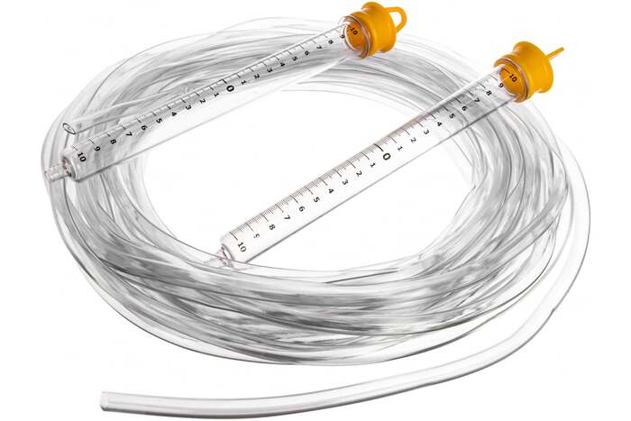 Визуально, участок имел небольшой уклон, прям совсем маленький. Был куплен водяной уровень, такой: