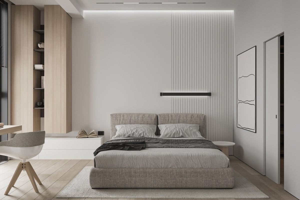 Свет в минималистическом интерьере играет одну из ключевых ролей. В данном проекте использовано максимальное естественное освещение, что делает помещение более приветливым и уютным. Также применены точечные светильники для создания акцентов и подсветки декоративных элементов.