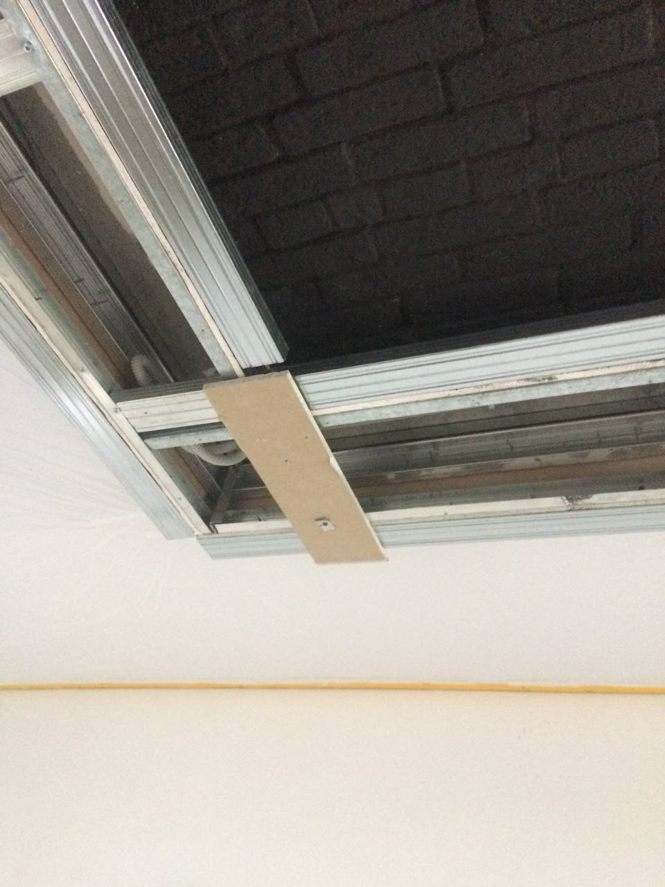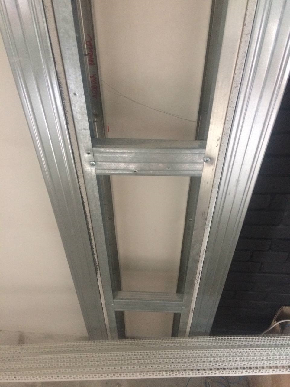 В моем случае потолок натяжной, поэтому были рассчитаны размеры учитывая потолок, чтобы все «толщины» и просветы для подсветки были одинаковыми, но работяга который переделывал оказался ишака сыном, и размеры черновой конструкции оказались такими — по внутреннему контуру — 10 см, по внешнему у стен — 11 см, по внешнему у потолка — 9 см.