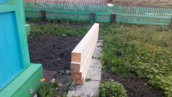 Закупил бруса и обработал антисептиком нижнюю часть, которая будет закопана.