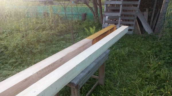 Далее отмыл и отшлифовал брус. Ну соответственно и покрасил все дело пропиткой.