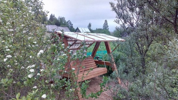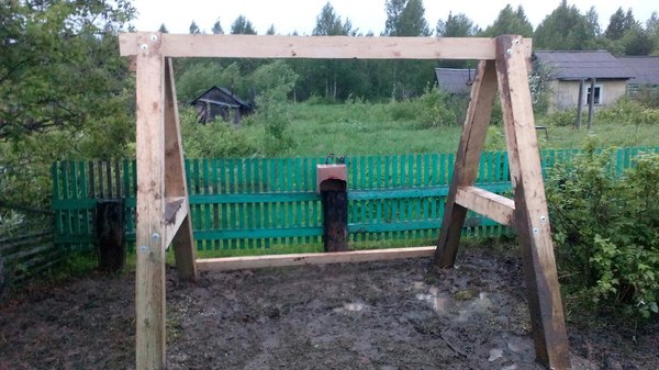 Постройка садовой качели из дерева.