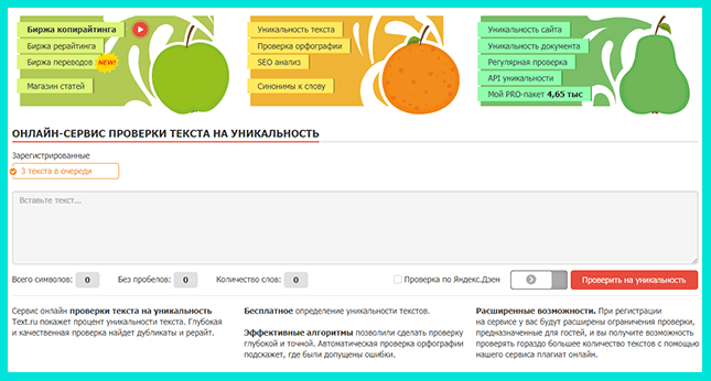 Уникальность текста — функция, позволяющая определить, насколько ваш текст оригинален и не содержит заимствований из других источников. Использование уникального контента является критическим для поисковой оптимизации, так как поисковые системы обогревают тексты с высокой уникальностью.