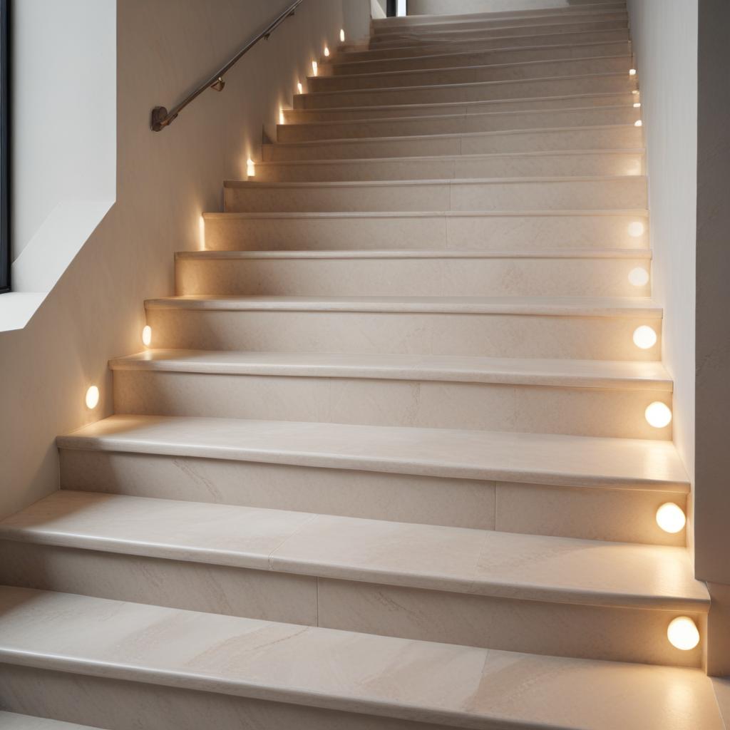 Для ступеней из керамогранита доступны различные форматы, поверхности и текстуры. Гладкие поверхности создают минималистичный образ, текстурированные — повышают сопротивление скольжению, а имитация камня придает лестнице естественный вид. Цветовые решения варьируются от светлых нейтральных тонов до темных оттенков, что позволяет гармонично сочетать лестницу с интерьерной палитрой и отделкой стен. При выборе формата учитываются пропорции лестницы, высота шага и обзор пространства, чтобы обеспечить плавный переход между участками помещения.